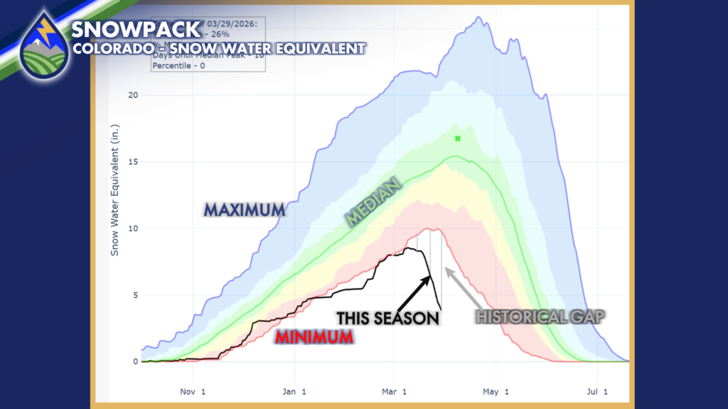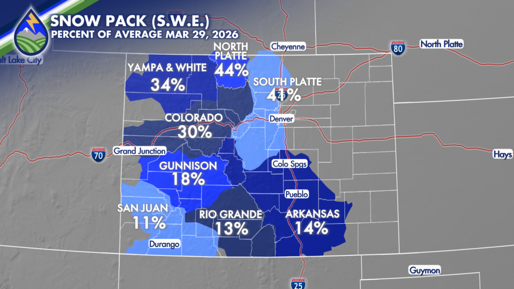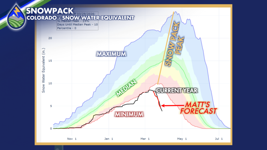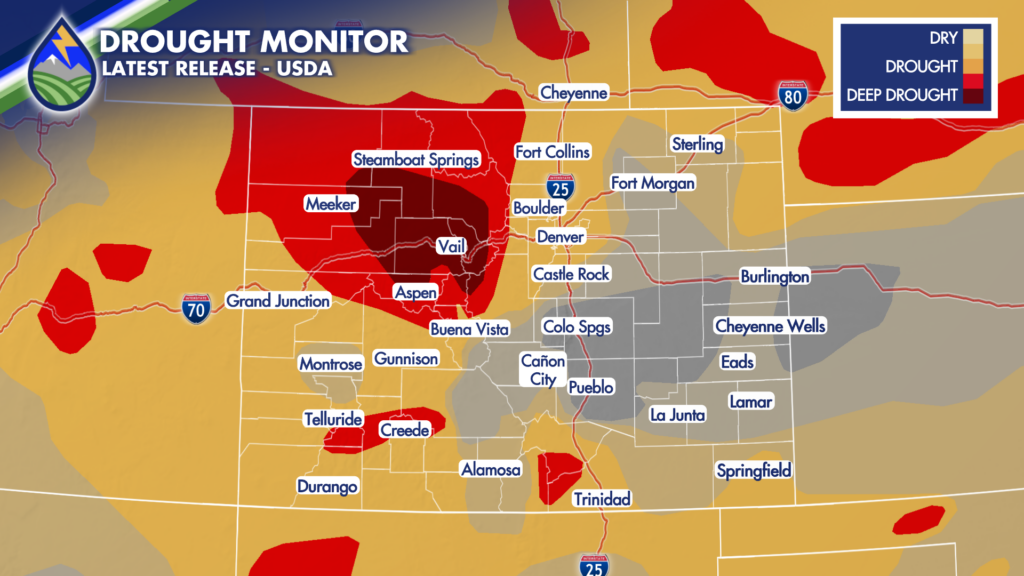 We’ve got deep drought in the central and northern mountains and well-established drought conditions elsewhere in the high country. If you find yourself thinking, why isn’t the drought the same in the southern mountains? Remember in the fall when there was 5-10″ of mainly rain from the remnants of a tropical storm? Remember Poncha Springs flooding? That’s why the deepest drought isn’t as widespread in the southern mountains.