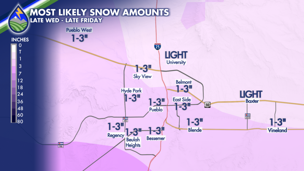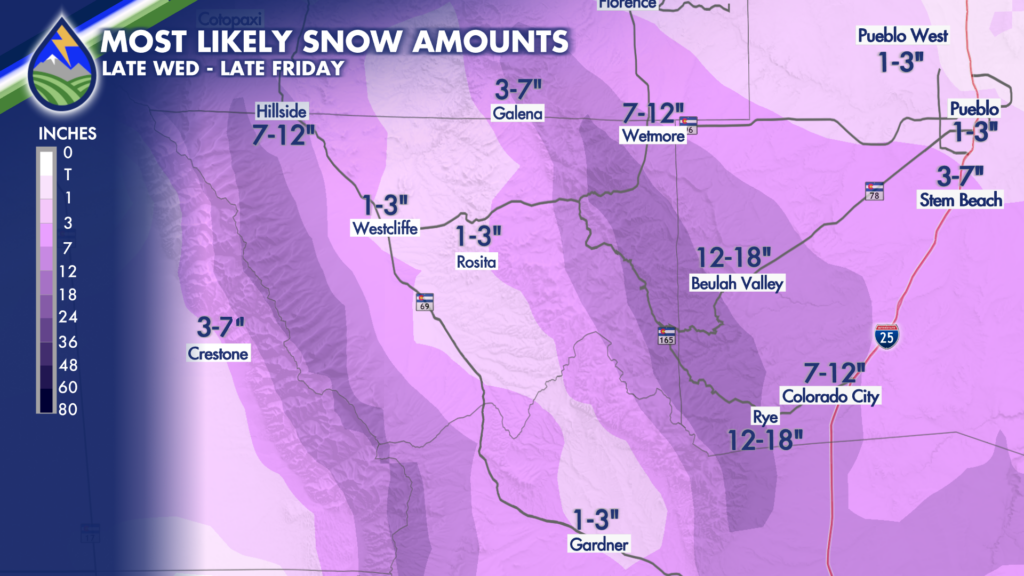 HIGHWAY 50, PUEBLO, WET MOUNTAINS, WET MOUNTAIN VALLEY: A snowstorm is on the way to southern Colorado, about our first in a month since the decent one in early December that put us above average for the final month of the year.