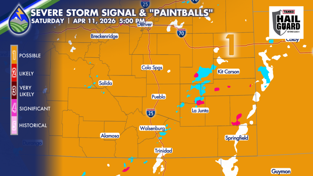 SATURDAY STORMS: Dewpoint temps aren’t too bad for the time of year as the day begins. Thank the cold front that had our temps cool east of the mountains yesterday. Energy from the southwest moves overhead later today and we will get thunderstorms to develop. First over the mountains and then out across the plains.