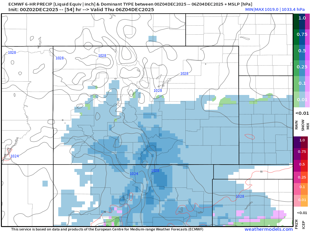Snow will spread over the mountains and ski-resorts through the day Tuesday and begin to impact the eastern mountains west of Interstate 25 toward sunset. Snow will spread east along the cities in earnest early Wednesday morning and shift south gradually through the day, ending from north to south in the mid-afternoon through the evening.
