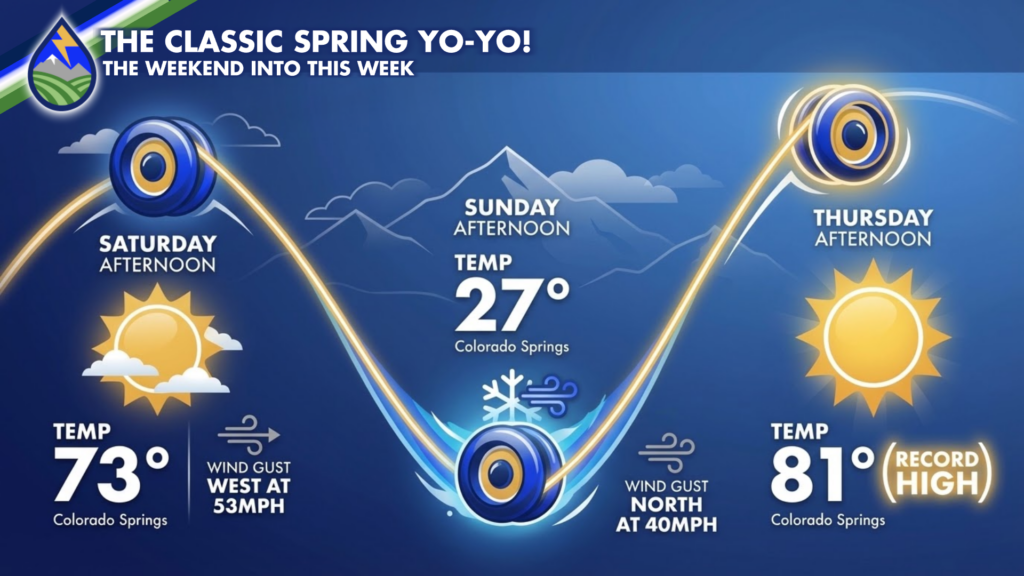 As we transition from winter (what we had of it) into the warmer months we can get some wild swings. This weekend was a great example. I know it’s still cold and windy, but we’re about to go right back up this week! I usually use a yo-yo or a rollercoaster analogy to try and make the point. You see why!